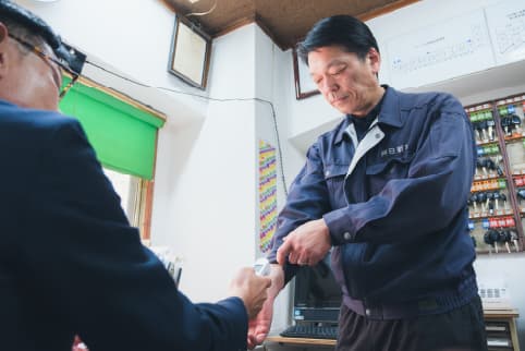 - 午前3時半頃までには、メンバー全員が帰社します。アルコールチェックと健康状態の確認を行い、運転日報を提出して退勤します。