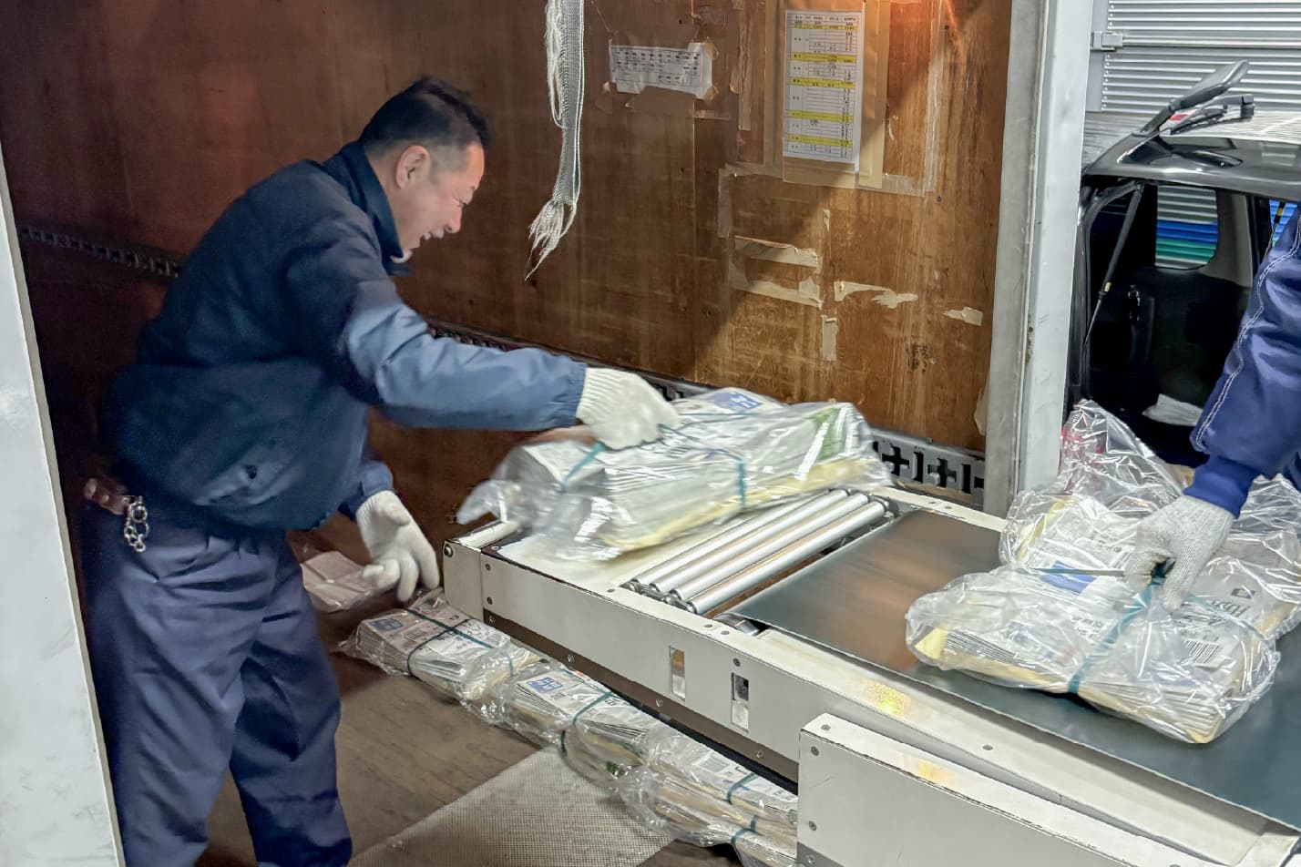 翌日の積み込み - すべての納品を完了して物流センターに戻ったら、翌日の積み込みです。